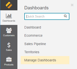 Navigate to Dashboards > Manage Dashboards in the main menu.