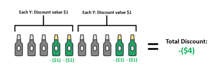 Buy X Get Y (Same Product) — The price of certain quantity of the line items (up to Y) may be discounted when they are ordered in bulk (more than X), or