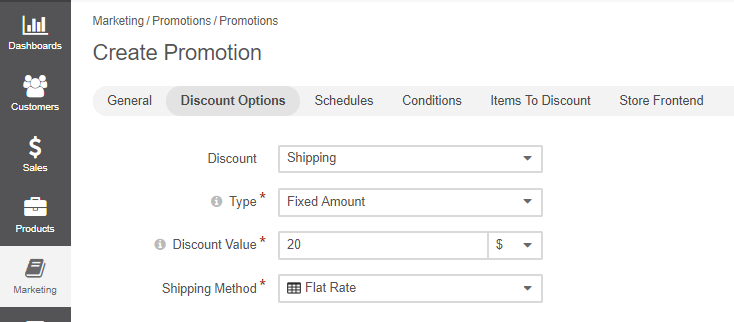 Shipping promotions allow you to set a discount for any shipping options configured under shipping method integrations. OroCommerce sellers can add a shipping promotion which can be automatically deducted at checkout.