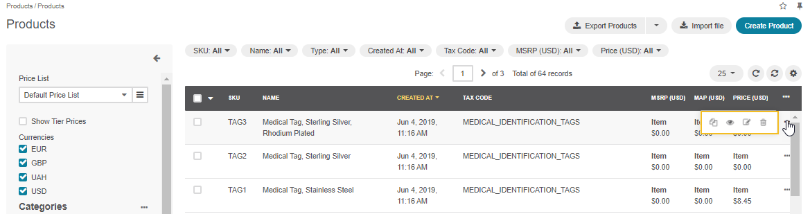 Hover over the More Options menu at the end of the required product’s row, and select whether to