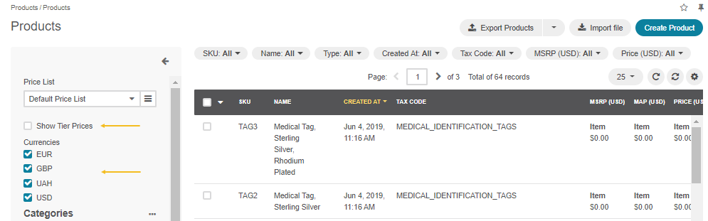 To display/hide pricing information related to the particular currency, select/clear the checkbox next to the name of the corresponding currency in the left panel.