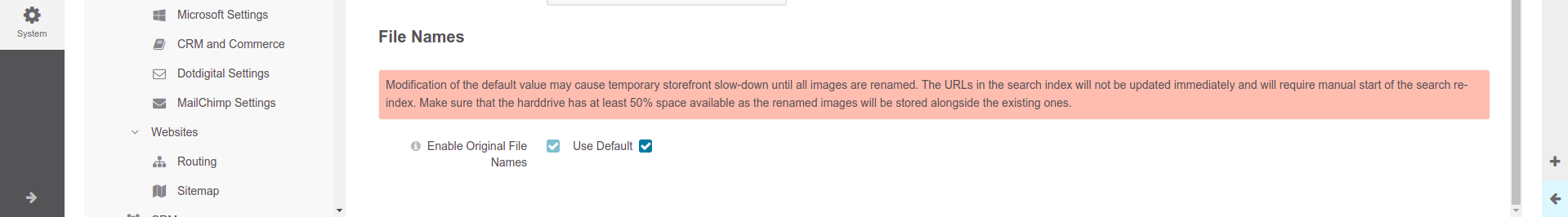 When this option is enabled, the Enable Original File Names setting for Product Images is hidden from the system configuration page.