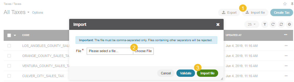 Example of tax bulk import template