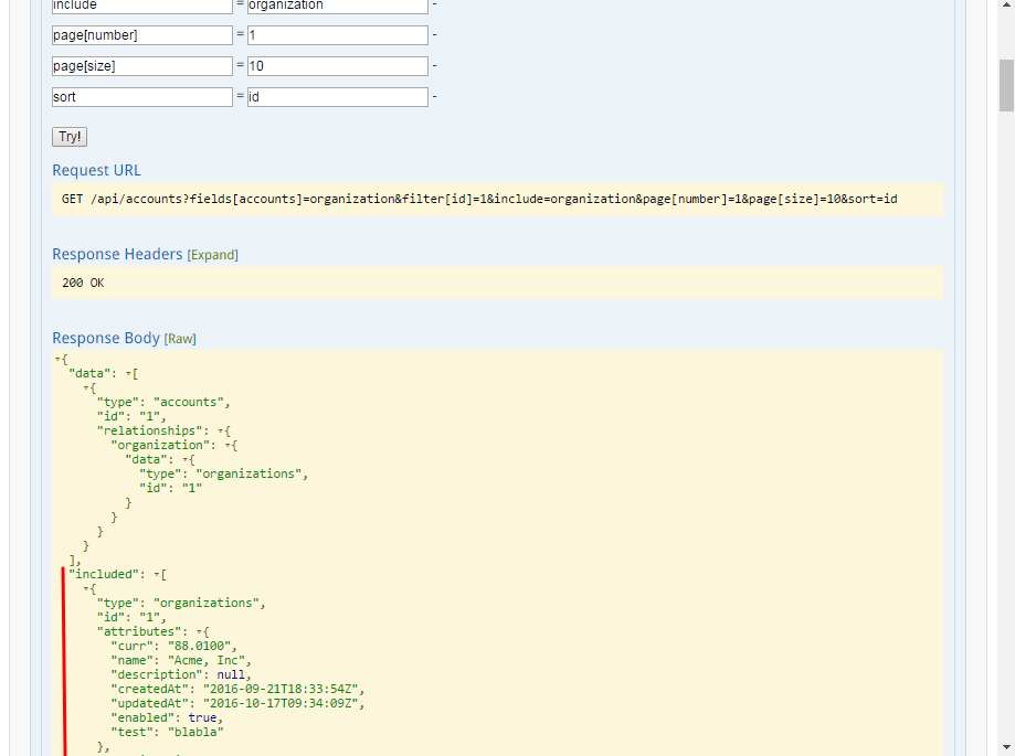 { "data": [ { "type": "users", "id": "1", "attributes": { "username": "admin", "email": "admin@local.com" } }, { "type": "users", "id": "2", "attributes": { "username": "sale", "email": "sale@example.com" } } ] }