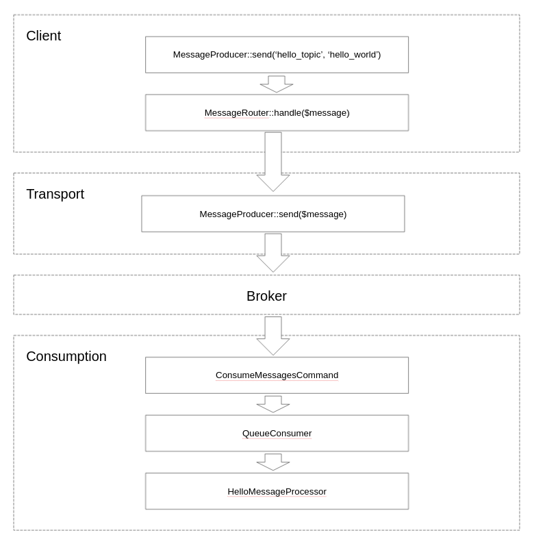 Consumption - the layer provides tools to simplify the consumption of messages. It provides a CLI command, a queue consumer, a message processor, and ways to extend it.