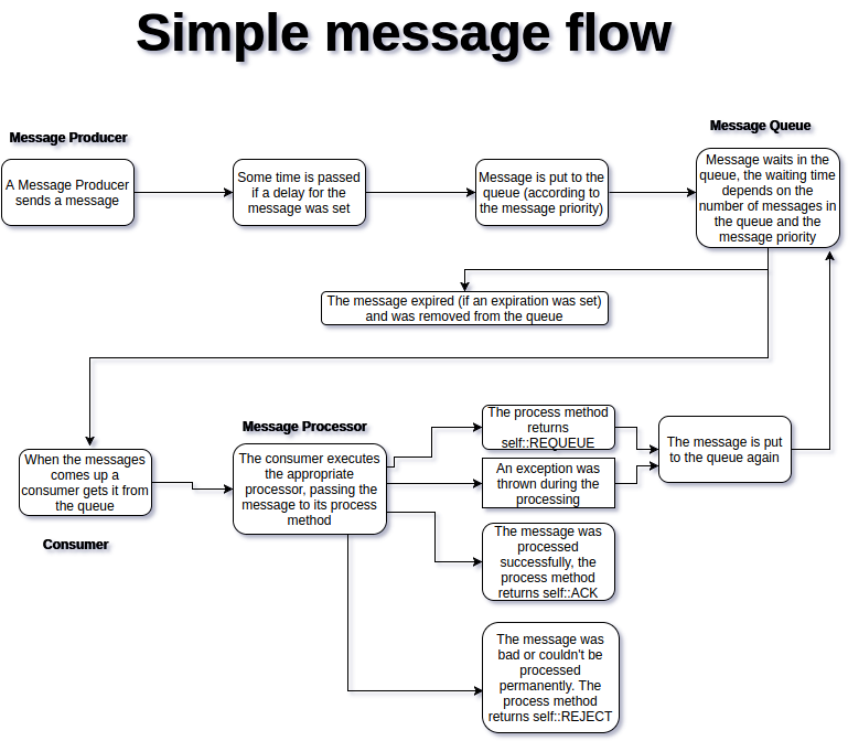 The workflow of re-queuing messages (processor returns ``self::REQUEUE``) is the following: