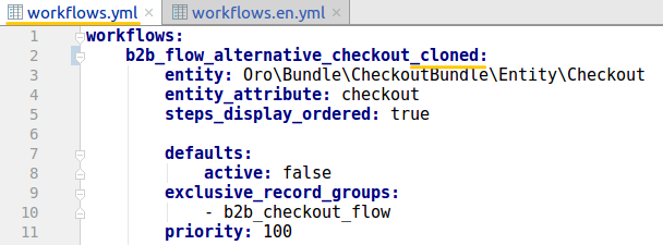 To configure a custom workflow, create the workflows.yml file with the configuration and save it into the /Resources/config/oro directory of your bundle.
