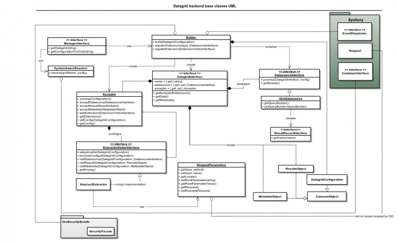 A datagrid is usually used to visualize some data coming from a data source. OroDataGridBundle allows for the use of various data sources for datagrids and includes the ORM data source adapter out of the box. It is possible to implement your own data source adapters as well.