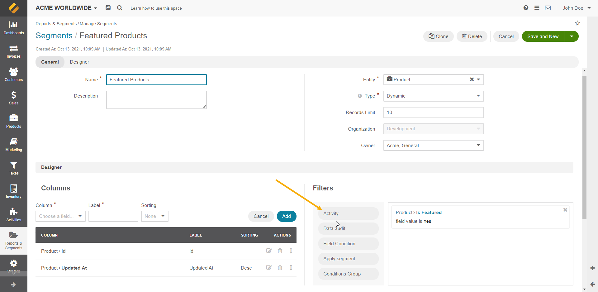 ActivityListBundle extends OroSegmentBundle with the Activity filter type.