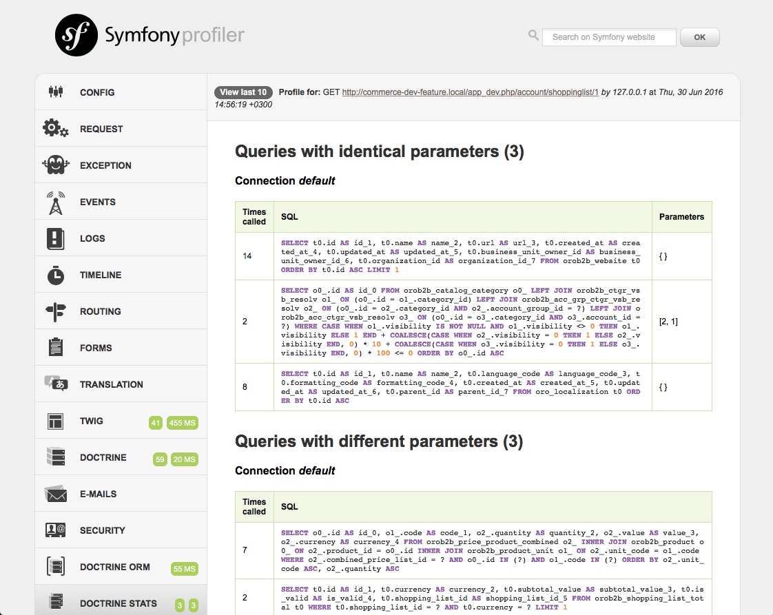 Profiler gathers statistical information about the Doctrine queries that have been executed during a request.