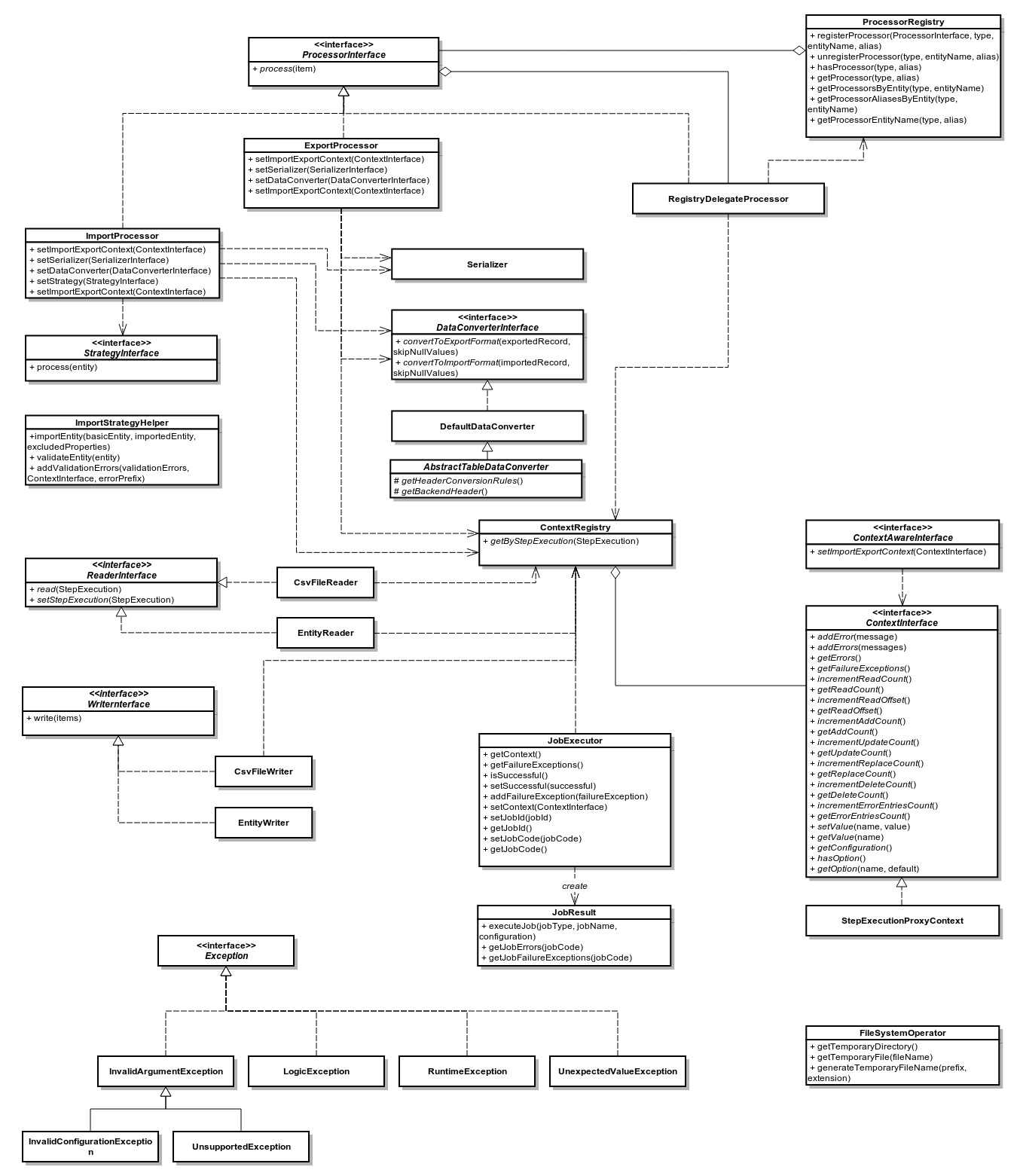 The following diagram shows the classes of OroImportExportBundle (./domain-model.md).