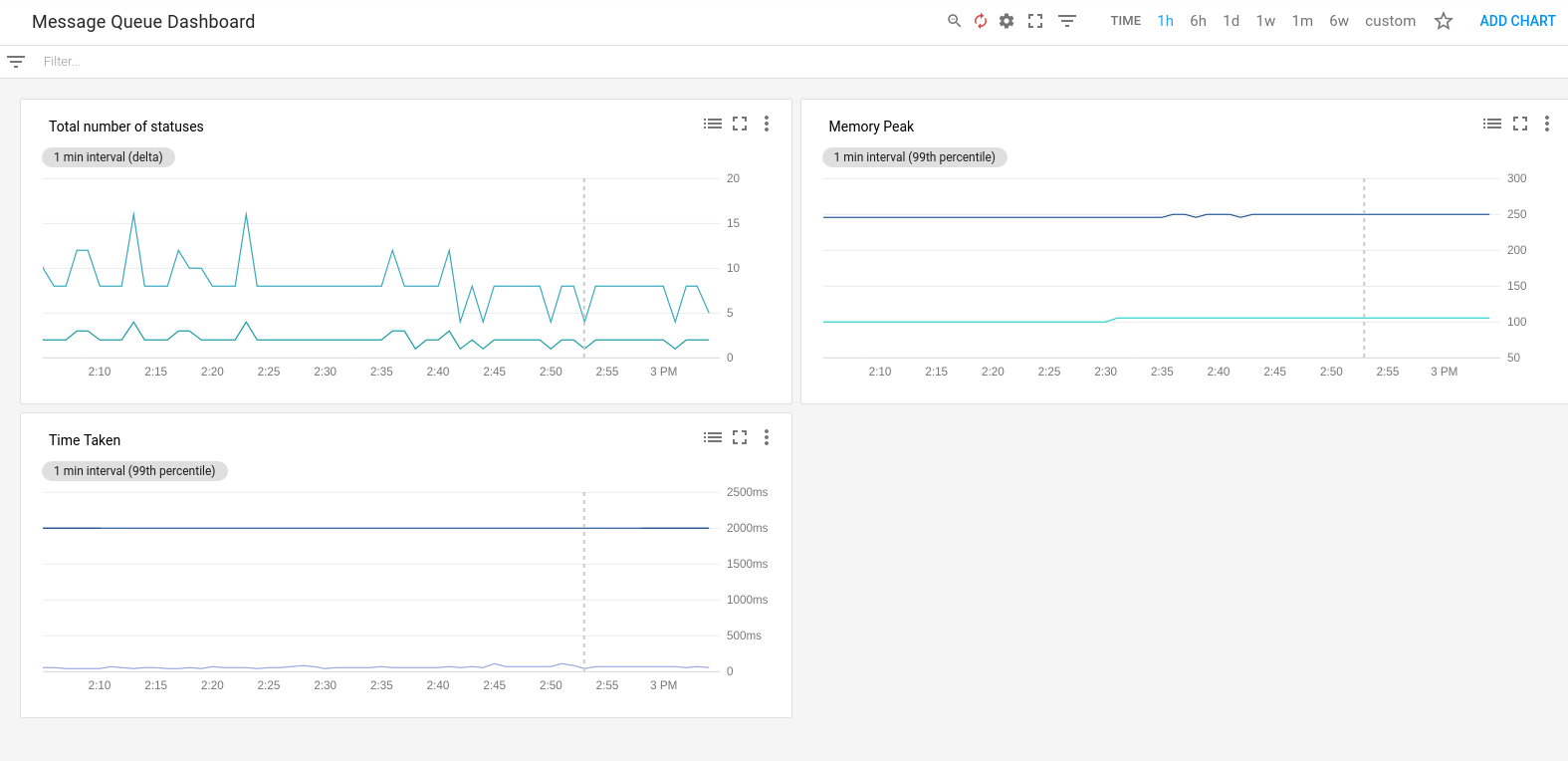 Configure “Message Queue Dashboard”, as described in Creating and Managing Dashboard Widgets, and create charts and alerts. You can monitor and be notified if something is not going as expected.
