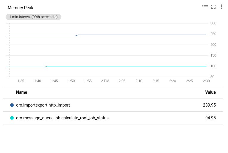 peak_memory Name: topic, Label type: String, Field name: jsonPayload.extra.message_properties.”oro.message_queue.client.topic_name” Name: status, Label type: String, Field name: jsonPayload.status Distribution jsonPayload.extra.peak_memory ([0-9.]+) MB Linear (setup current and below values by yours preferences) 40 200 5