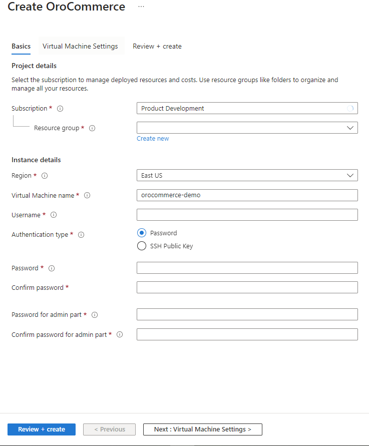 Azure Marketplace enables you to deploy pre-configured demo instances of the latest LTS releases of OroCommerce Community Edition with demo data.