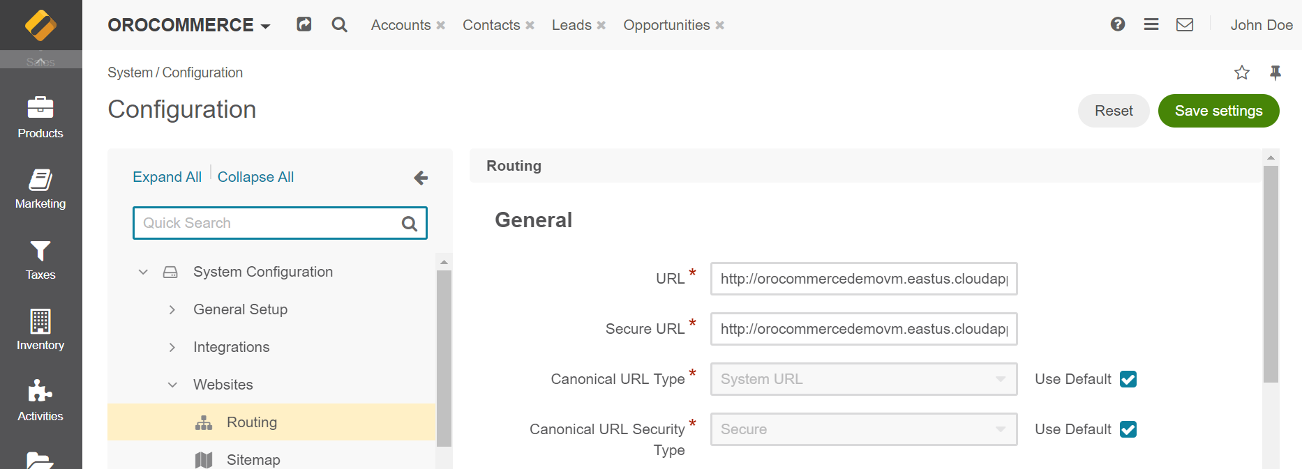 (For OroCommerce only) Navigate to System Configuration > Websites > Routing in the application back-office, and provide Secure URL and URL.