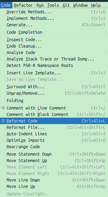 Please be aware that the tool may break the code style of the changed files. You may need to make some manual adjustments to ensure they meet the project’s coding standards. We recommend using PhpStorm’s built-in Code > Reformat Code feature for the changed files: