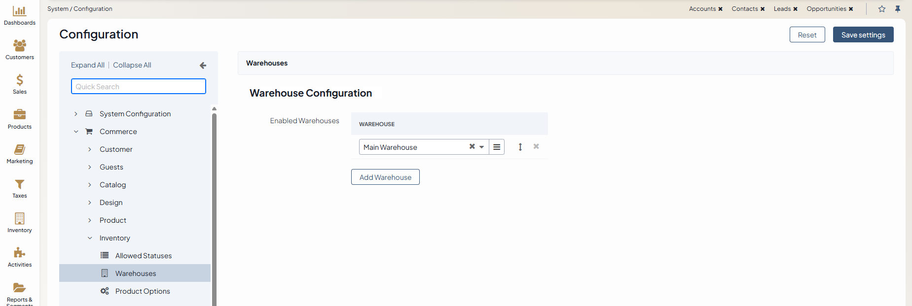 displayed_warehouses: Controls which warehouses’ inventory levels are displayed. Options include: