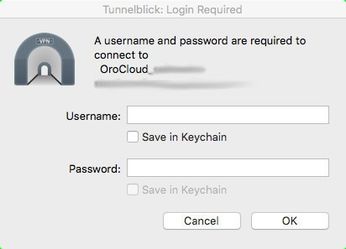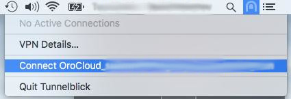 Click Tunnelblick icon and click ‘Connect OroCloud…’: