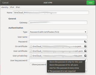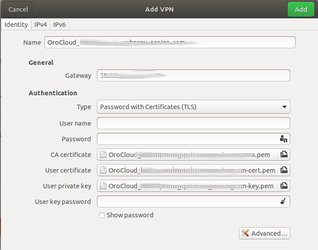 Used client software: openvpn 2.4.x, network-manager-openvpn, network-manager-openvpn-gnome