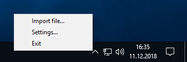 Left click on tray icon and select Import file.