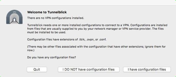 Drag the ovpn configuration file and drop it on the Tunnelblick icon on panel. In the permissions popup, select Only Me.
