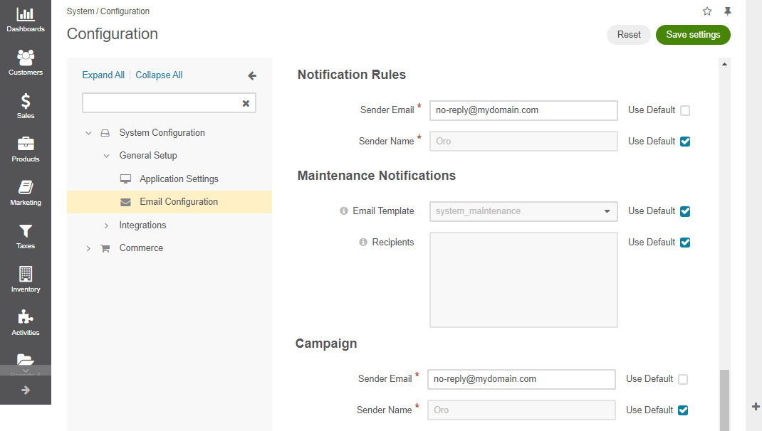 Any Oro application hosted on OroCloud can use an SMTP server maintained by Oro to send emails to your customers.