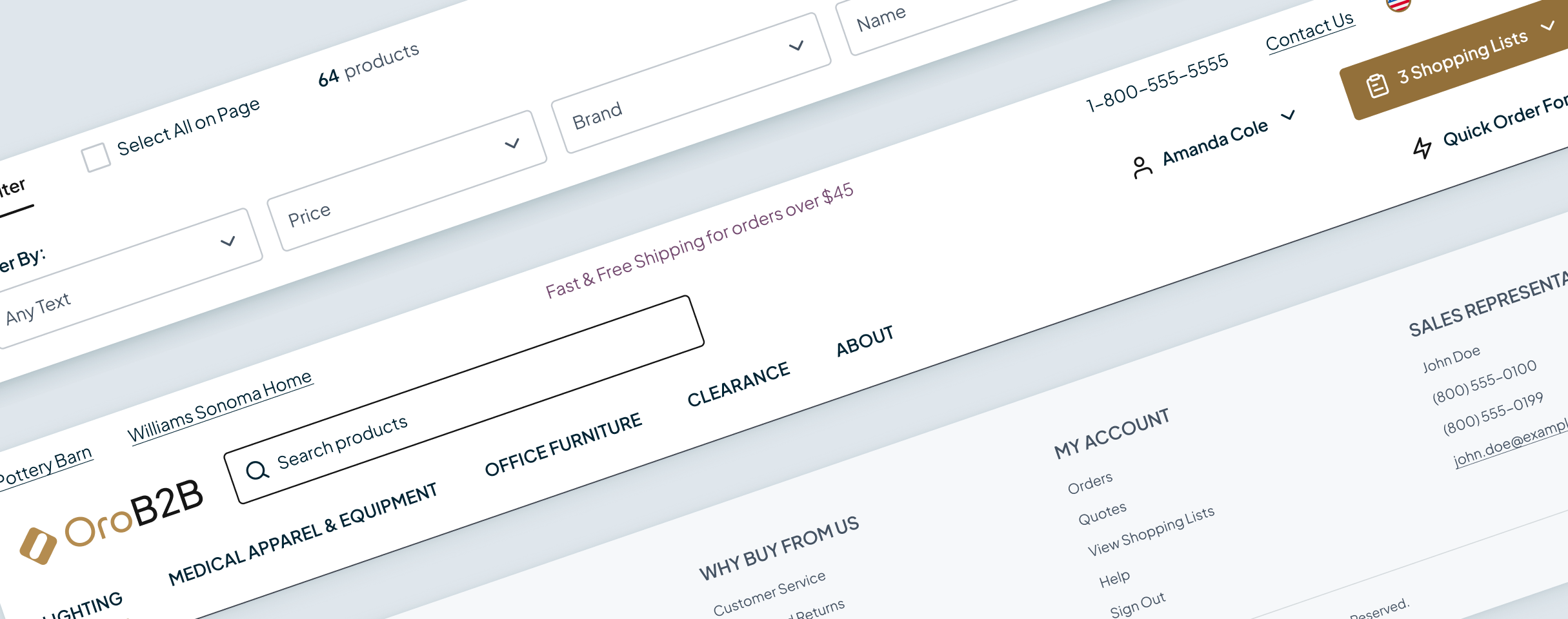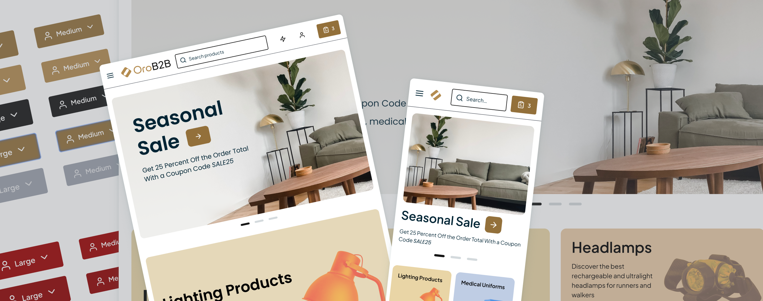 OroCommerce 6.1 LTS has introduced brand new Golden Carbon and Refreshing Teal storefront themes that give a modern and fresh look. These themes include a fully editable homepage with configurable content templates and widgets, an improved and retina-optimized slider, product segment widgets and more. The new themes have been designed to improve accessibility and internationalization, making navigation, search, and checkout experiences better, while also ensuring optimal performance.