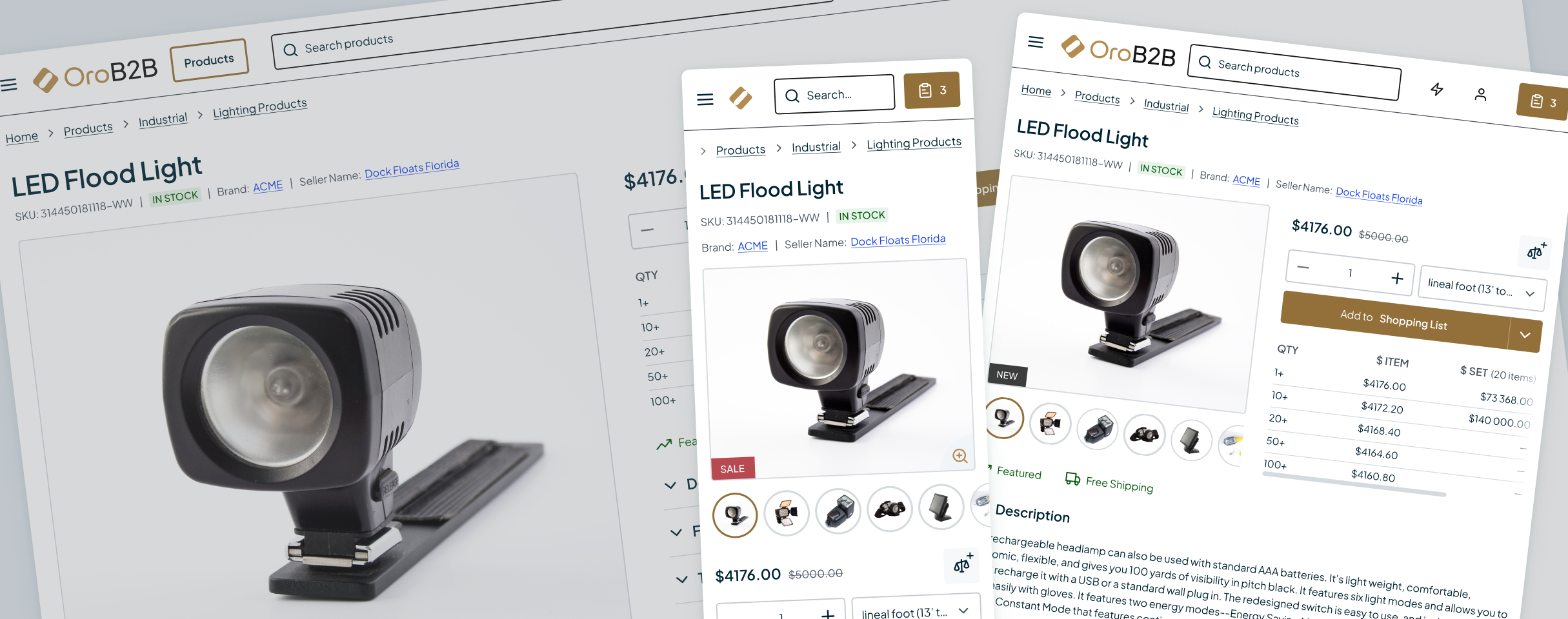 OroCommerce uses responsive web design, an approach that ensures web pages display correctly on various devices and screen sizes. To achieve usability and satisfaction, content, design, and performance must be consistent across all devices.
