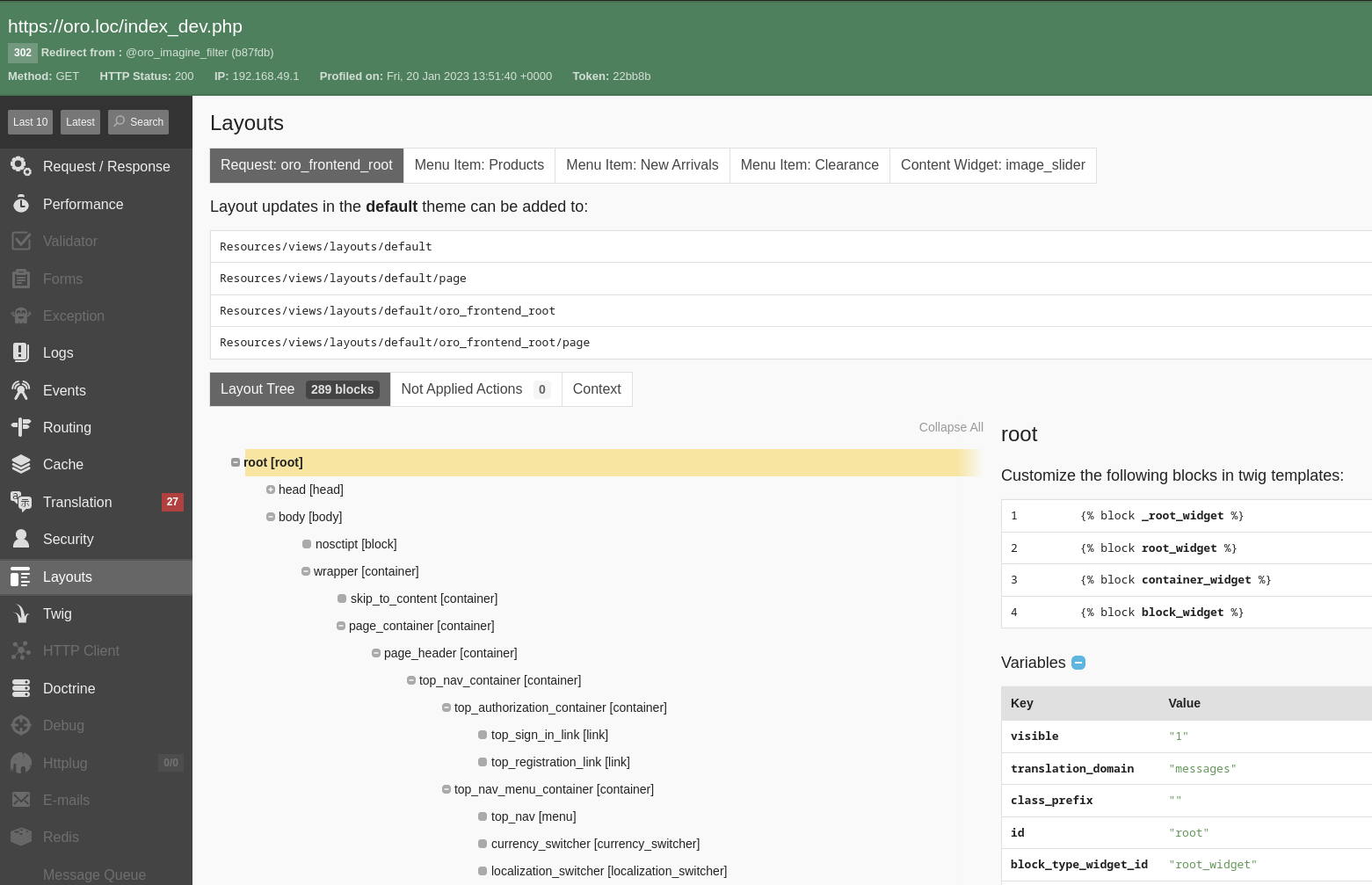 The Layout section of the Symfony Profiler page contains all rendered layouts: