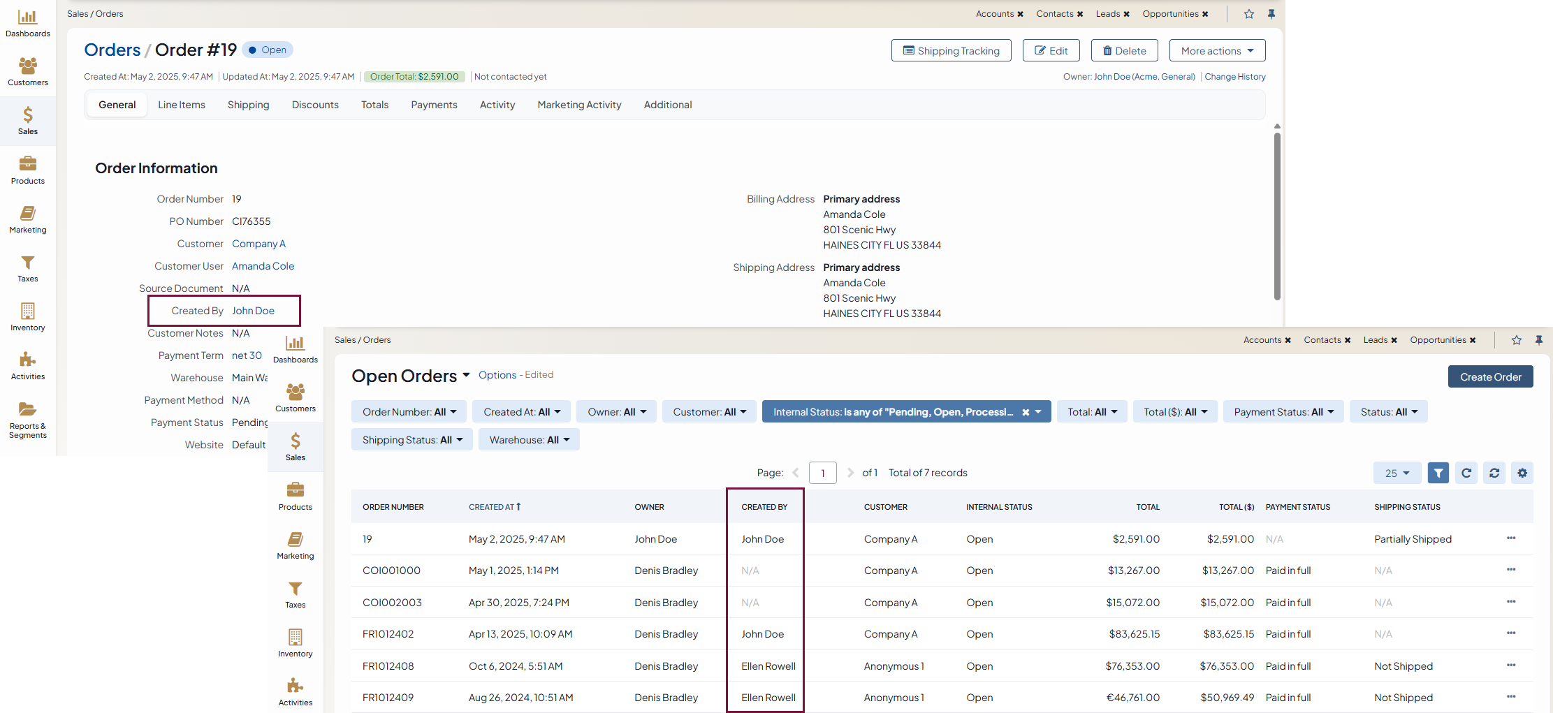 View requests for quotes, quotes, sales orders, and shopping lists created by the customer user.