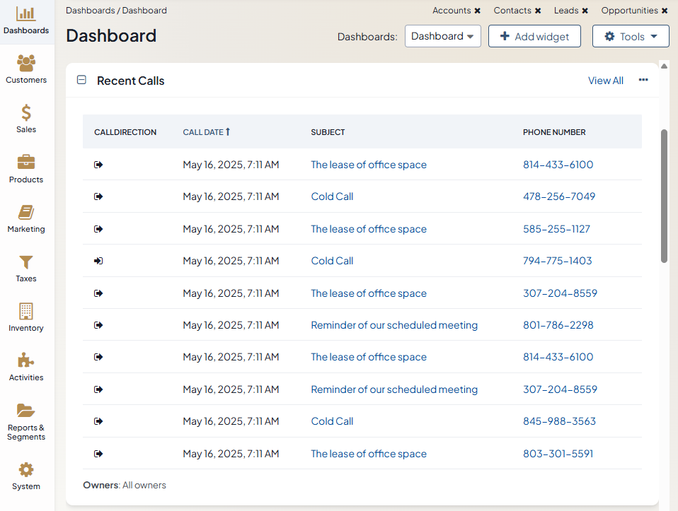 For how to add widgets to the dashboard and manage them, see the relevant topics: