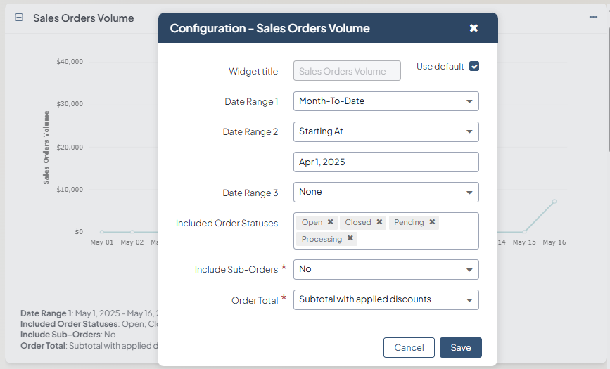 Include Sub-Orders — select whether to include sub-orders to the widget information.