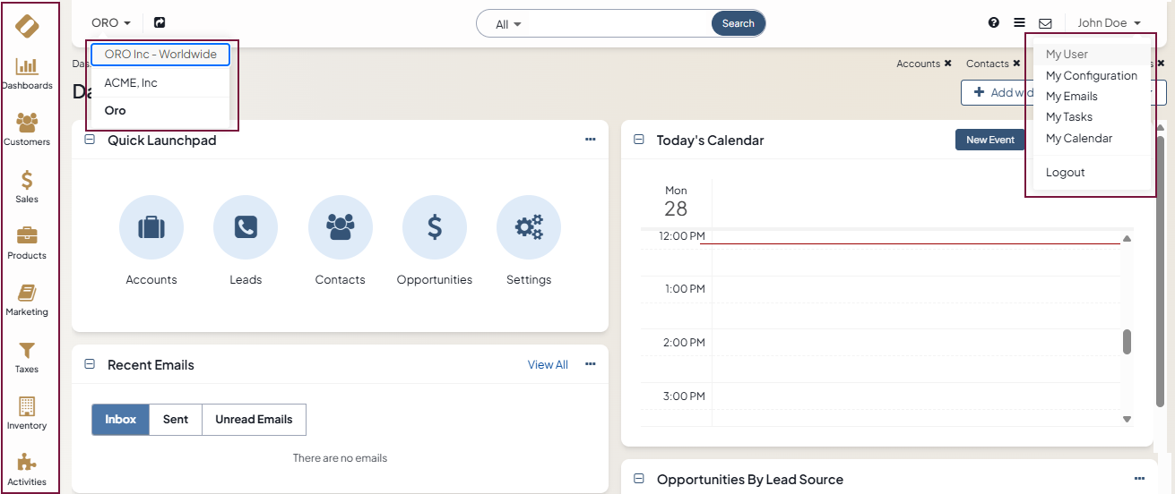 Oro application is a flexible application that can be easily custom-tailored to meet your business’s specific needs and make all sales, marketing, support, and administrative activities appear familiar and convenient for your employees and, as a result, efficient.