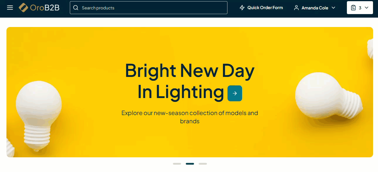 OroCommerce storefront supports search autocomplete, or predictable search, making it easier for users to enter text by generating predictions based on the first letters they type in. Our search autocomplete feature shows up-to-date product information, such as SKU, name, price, and inventory status. A system administrator can even configure the number of products to display in the search result dropdown via the back-office.
