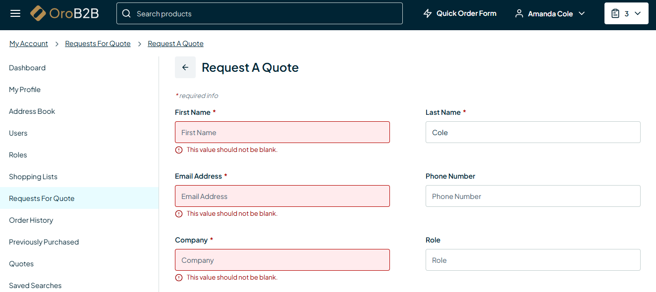 We ensured that our text descriptions in the storefront could work with screen readers. All storefront fields have “aria” labels for describing interactive elements, so if a problem arises when submitting a form, users can address it with keyboard commands and receive explanations in a visual format. When a user successfully submits a form, they are audibly alerted.