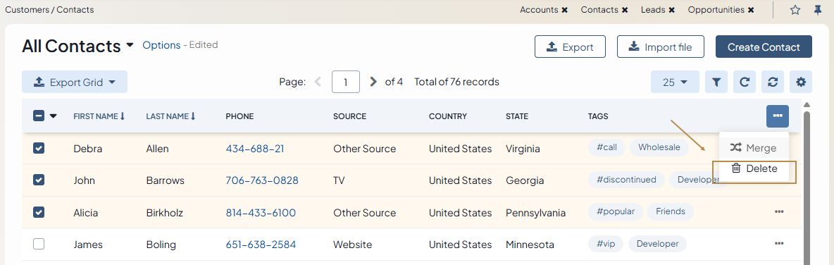 Some records in your Oro application can be removed from the system using bulk delete (e.g., marketing lists, contacts, email campaigns, etc).