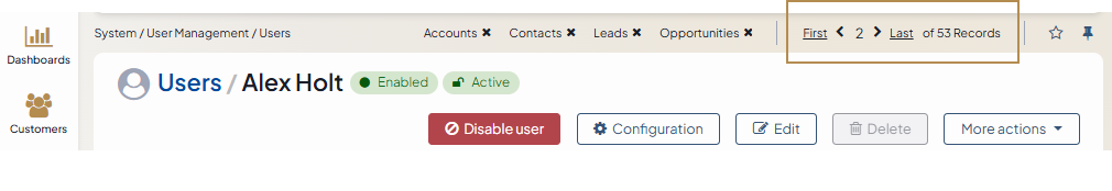 Record Pagination — Enables the user navigation to the previous or next grid record from a record view page.