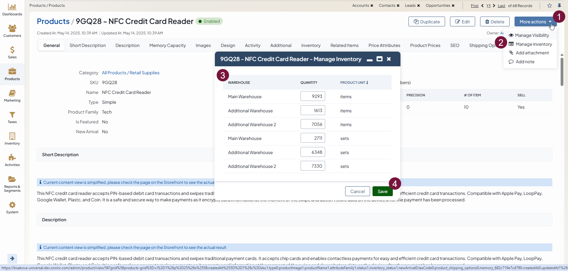 To manage quantities for a single product in multiple warehouses (multi-warehouse feature is only available in the Enterprise edition):