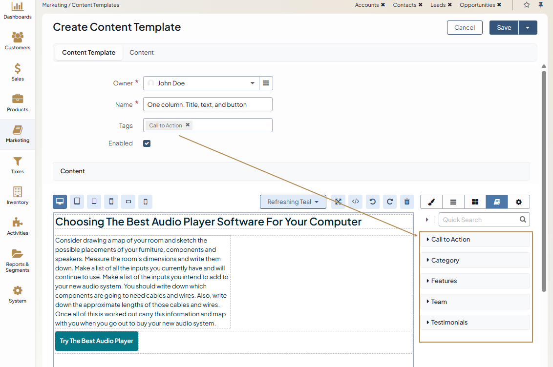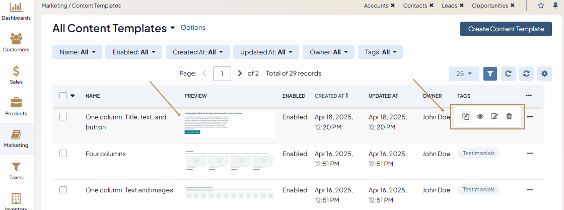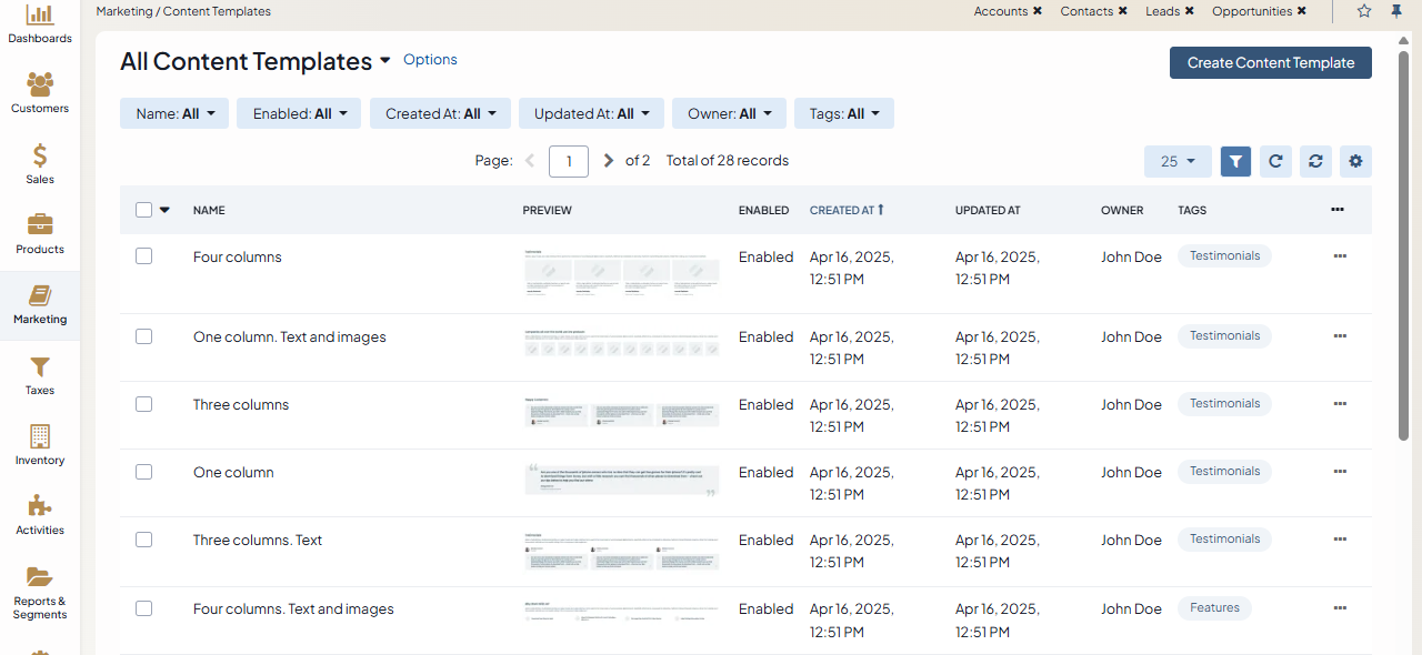 Navigate to Marketing > Content Templates in the main menu.