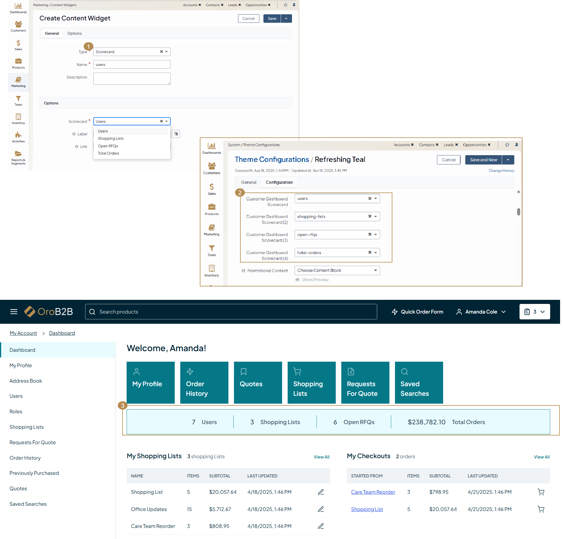 The Scorecard content widget is available as of OroCommerce version 6.1.2.