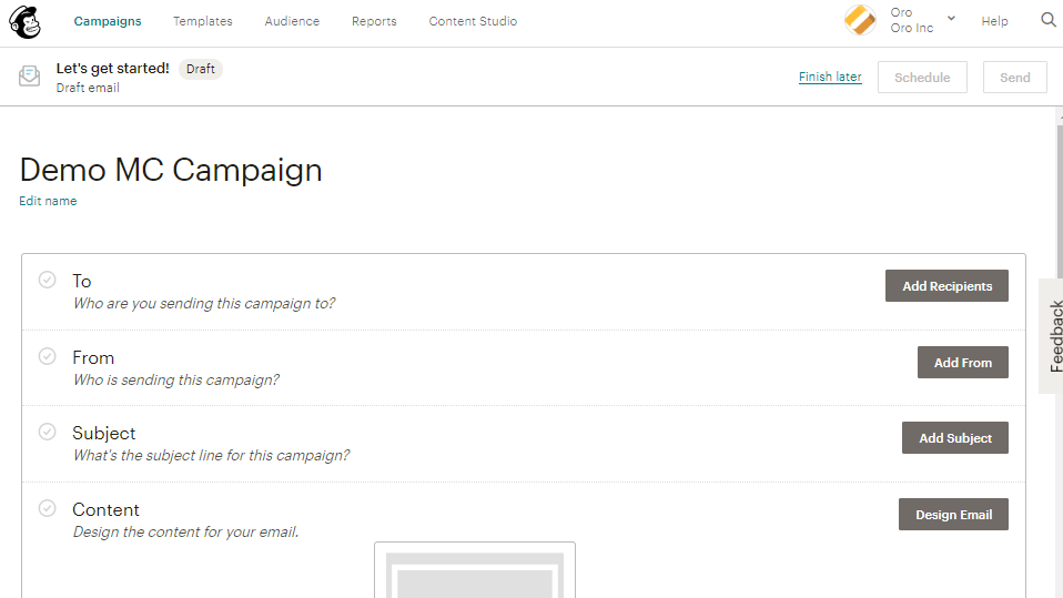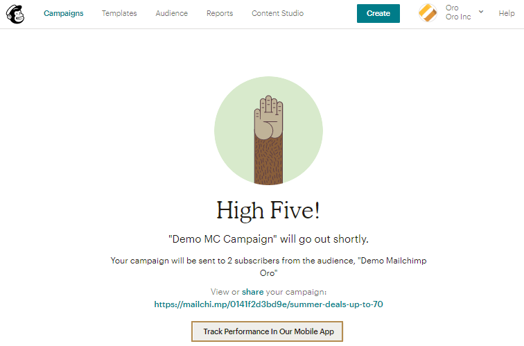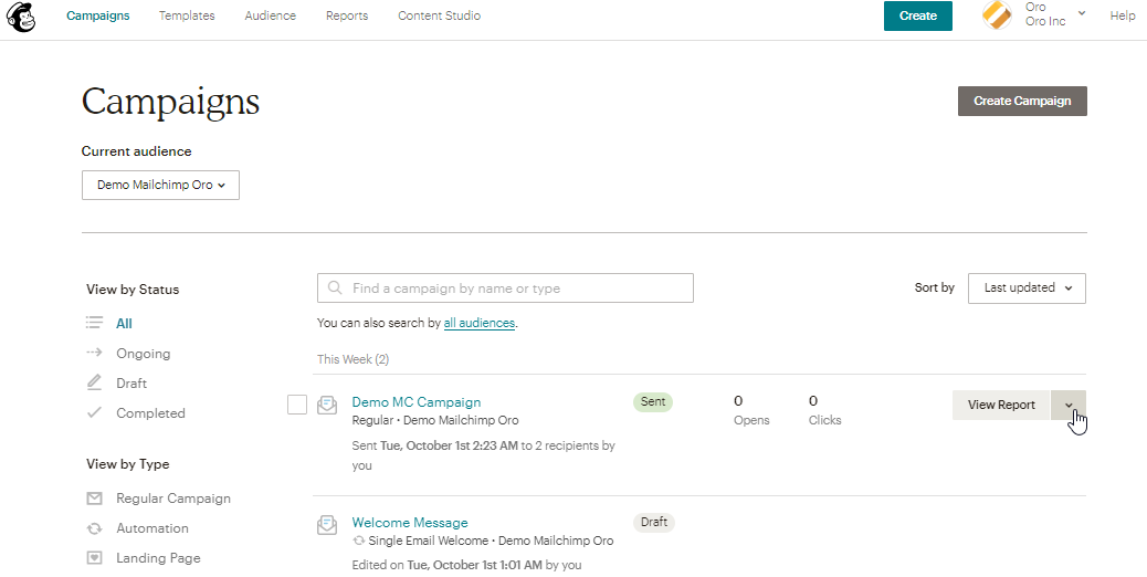 Once you have sent out your email campaign in Mailchimp, information about your email campaign should have been exported to the Oro application.