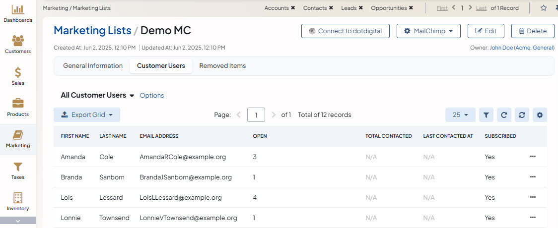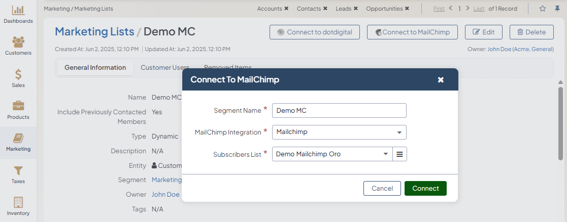 Sync Oro Marketing List Data with a Mailchimp Audience