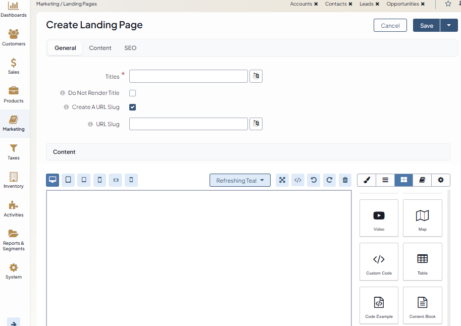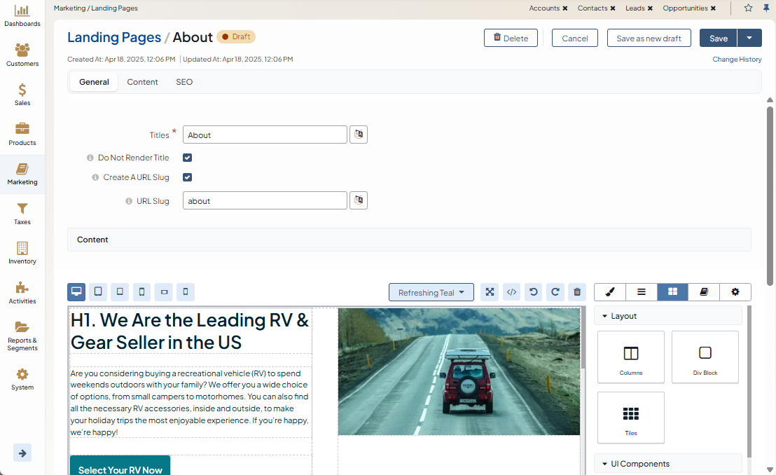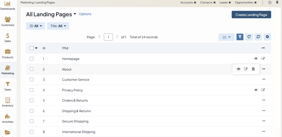 Navigate to Marketing > Landing Pages and click on the selected landing page.