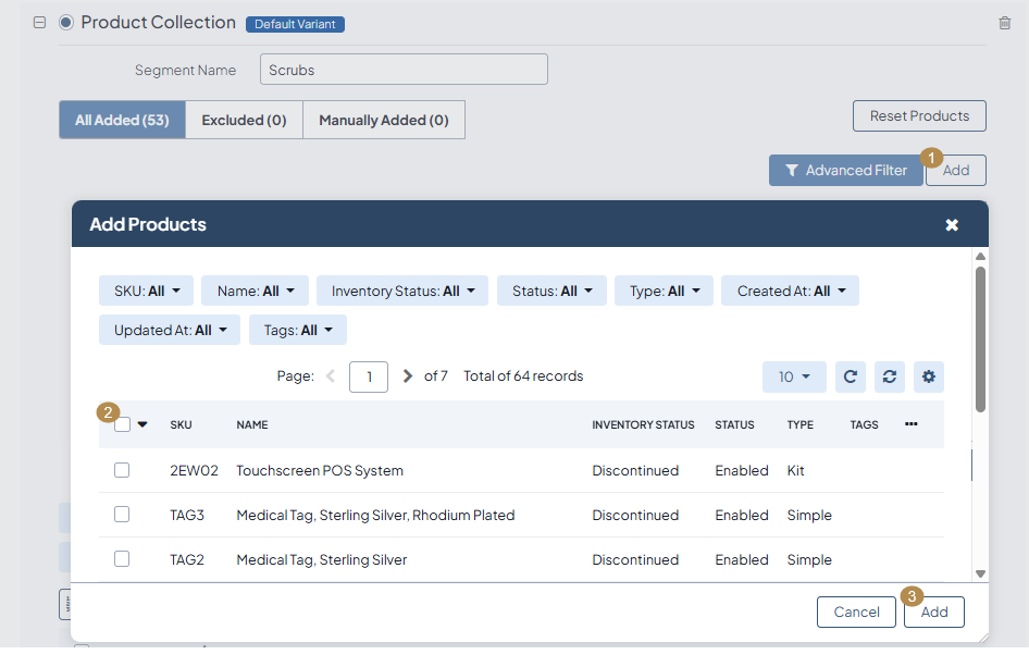 In the All Added tab, click Advanced Filter to set up a filter that will limit the products list and include only the necessary products.