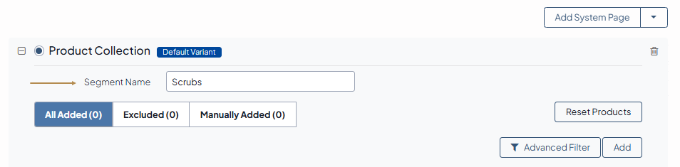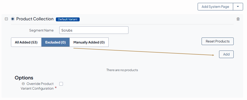 In the Content Variants section, make sure to add the All Products as the system page. To do this: