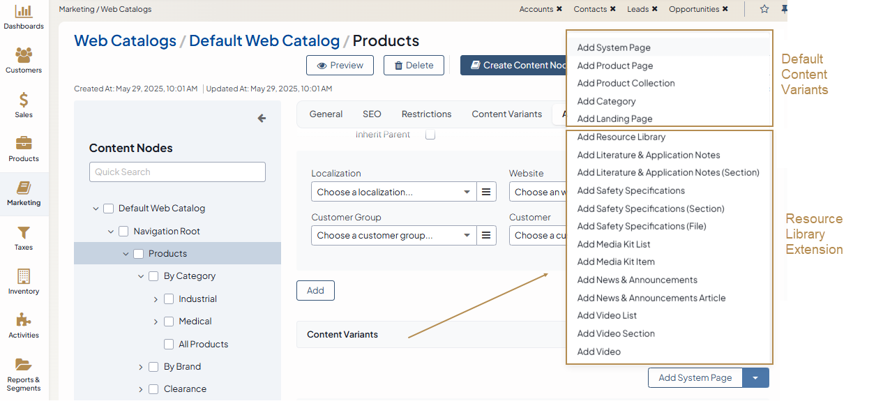 Click Save when you have filled in the web catalog content node or continue to add the content variants.