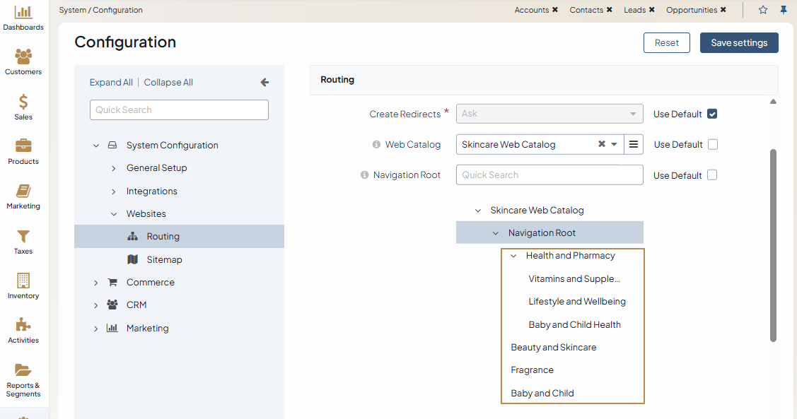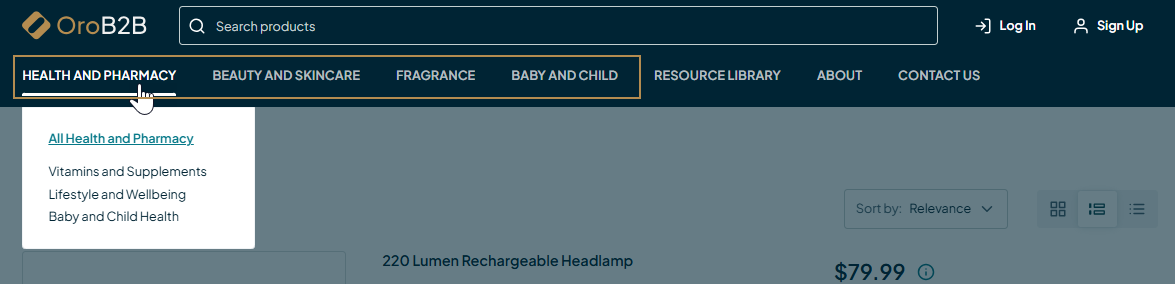 You can select any content node as a root node for the OroCommerce storefront menu. This enables you to display only the necessary sub-menu nodes in the storefront menu.