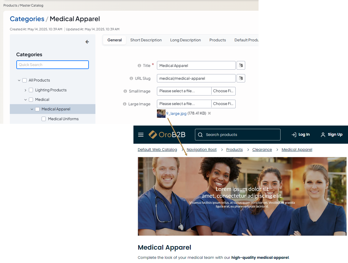 Small Image — An image used to represent the category in the storefront. The setting applies to OroCommerce version 5.1 and below and is retained in the current version only for legacy backward compatibility.