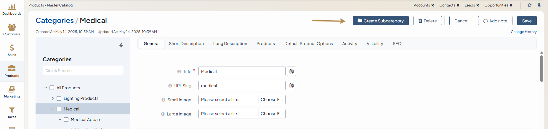 Once you have created the main master catalog category, proceed to its subcategory creation.
