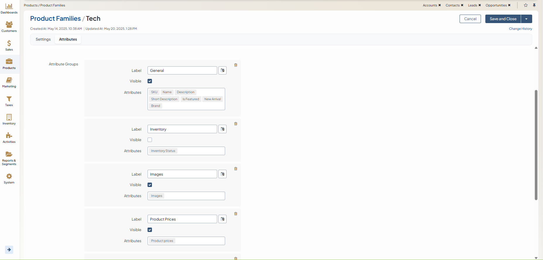 You can rearrange the groups and attributes in the groups inside the family. Out of the box, these system attributes are organized into the following structure:
